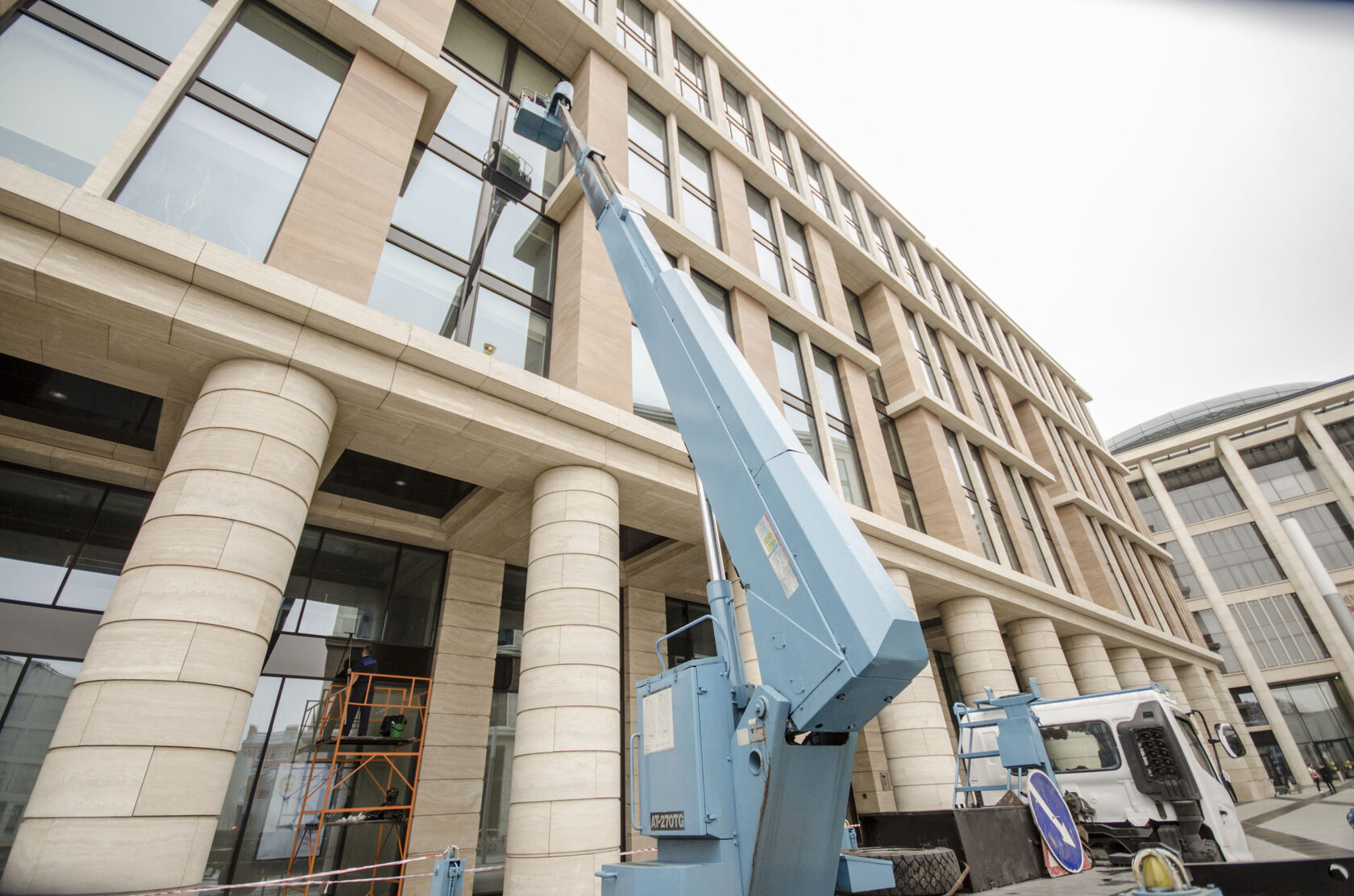 Мойка сплошного остекления (стеклянные перегородки, витражи и т.п.) высотой до 2,1 м от земли.;от 26 руб./1м²